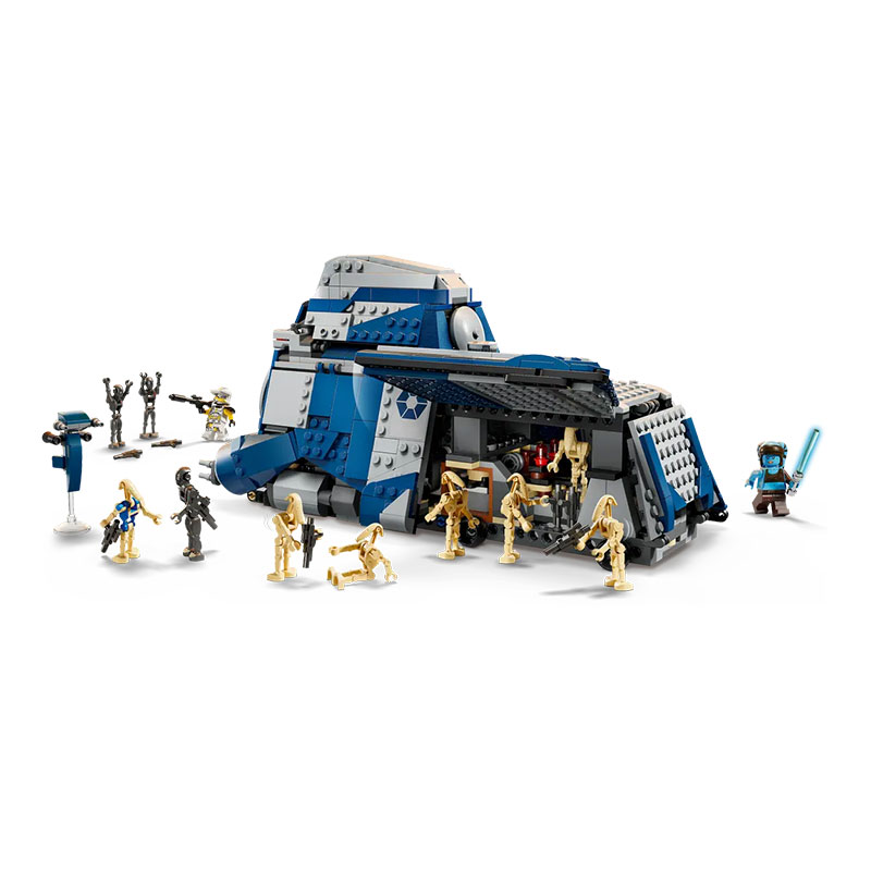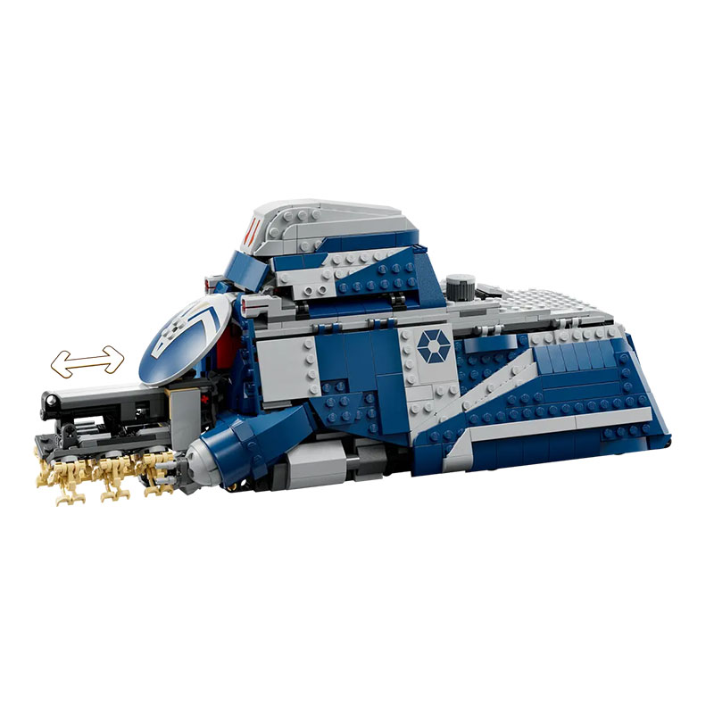 in navdušuje z avtentičnimi elementi, kot so premični mehanizem za izstrelitev droidov, zložljive stranske plošče za dostop do notranjosti, pilotska kabina ter STAP speeder, shranjen v zadnjem delu. Skrita kolesa omogočajo gladko premikanje po ravnih površinah, medtem ko vozilo odlikujeta tudi dva izstreljevalnika za dodatno akcijo. Ko se bitka konča, se komplet lepo poda tudi kot zbirateljski razstavni model. Set vključuje kar