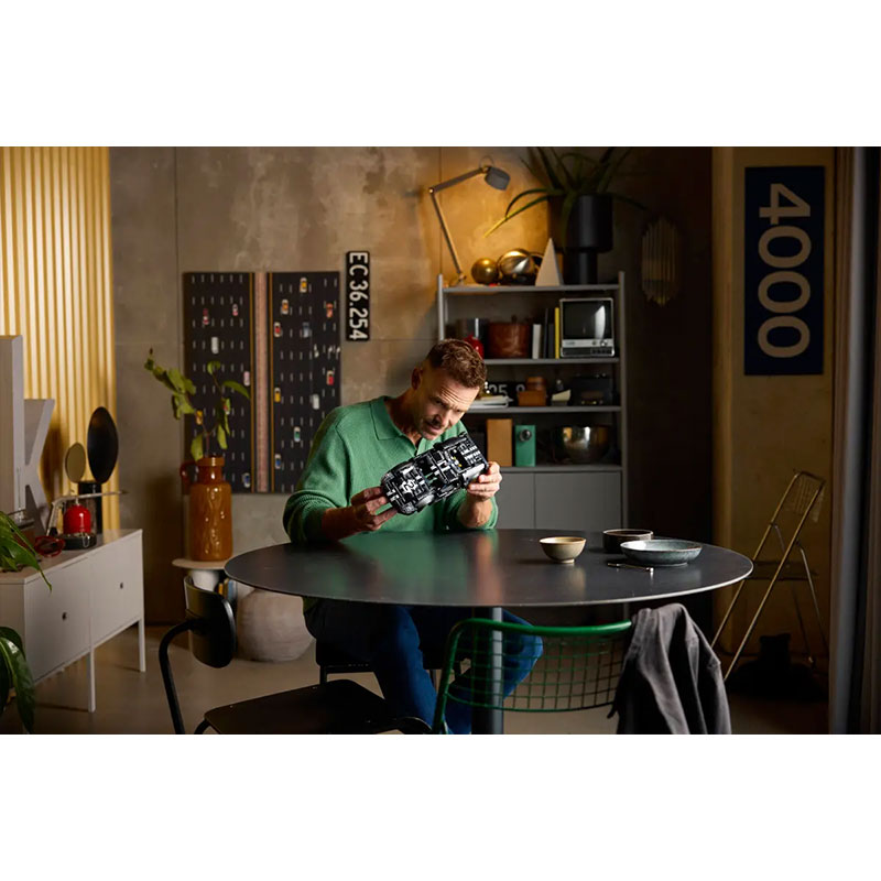 LEGO Technic seti uvajajo mlade graditelje v svet inženirstva in mehanike na zabaven in realističen način. Dirkalni model prinaša duh legendarnega avtomobila. Z vrtečim gumbom na vrhu lahko krmilite vozilo, odpirate vrata in pokrov motorja ter občudujete črno-srebrno dirkalno barvno shemo, ki sledi pravemu zmagovalcu. Pod pokrovom motorja se skriva podroben V8 motor, notranji vzvod pa omogoča odpiranje pokrova spredaj.