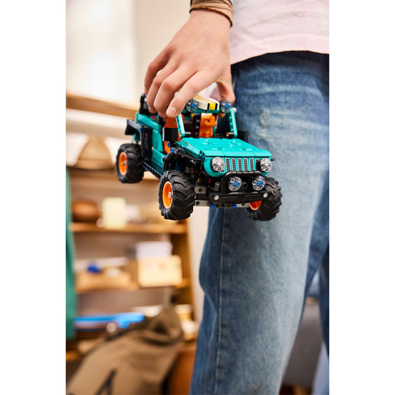 Realističen model terenskega vozila, ki združuje sestavljanje, igro in raziskovanje inženirskih funkcij. Model omogoča odkrivanje številnih delujočih elementov, kot so krmiljenje, vzmetenje in podrobno izdelan V6 motor, kar daje občutek pravega terenskega vozila. Med zabavnimi dodatki sta tudi odstranljiva deska za deskanje in simbolična “duck” figura, značilna za Jeep skupnost.