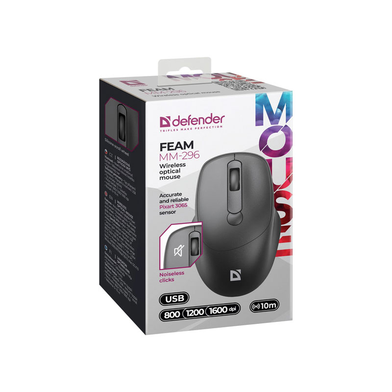 Miška Defender FEAM MM-296, brezžična, črna