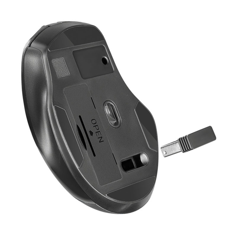 Posebnost modela so neslišni kliki, ki poskrbijo za tiho in nemotečo uporabo. Gumiran kolešček in prijetna gumirana površina zagotavljata dober oprijem ter udoben občutek med uporabo. Trpežni teflonski podstavki omogočajo gladko drsenje po skoraj vsaki podlagi. Ergonomsko oblikovana zasnova poskrbi za udobje tudi pri daljši uporabi, brezžična povezava pa omogoča doseg do 10 metrov za večjo svobodo gibanja. Miška podpira večnamensko programsko opremo za dodatne prilagoditve in deluje z operacijskim sistemom Windows, Mac in Linux.
