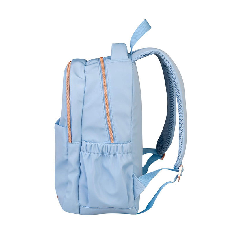 Eleganten nahrbtnik združuje nežen videz, funkcionalnost in udobje, zato je popolna izbira za šolo, prosti čas ali vsakodnevne opravke. S prefinjenimi detajli, kot so rose-gold zadrge, izstopa po svojem modernem in ženstvenem dizajnu. Poseben poudarek daje obesek za ključe - cof “pom pom”, ki nahrbtniku doda igriv in trendovski pridih. Material z videzom satena je mehak na otip, hkrati pa dovolj trpežen za vsakodnevno uporabo. Notranjost vključuje praktičen organizator, ki omogoča pregledno shranjevanje vseh potrebščin, medtem ko stranski žep za stekleničko poskrbi za dodatno funkcionalnost. Udobje pri nošenju zagotavljajo oblazinjene in nastavljive naramnice, ki se prilagodijo uporabniku.