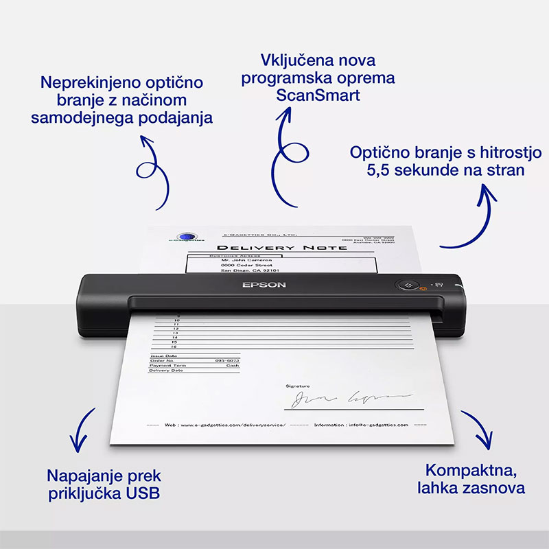Optični bralnik ES-50 je preprost za uporabo, prav tako ga lahko zaradi oblike, ki prihrani prostor, preprosto namestite in prenašate, napaja pa se s pomočjo priloženega kabla USB prek prenosnika ali namiznega računalnika. Idealen je za majhne ali domače pisarne (Small and home office – SOHO) z omejenim prostorom, kjer je potrebna preprosta rešitev za optično branje.