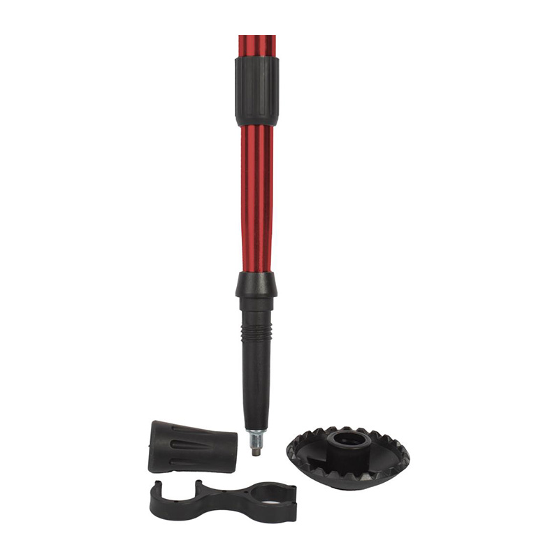 iz PVC imata vpete nastavljive poliesterske trakove za dlani. Za lažje prenašanje so pod ročaji nataknjeni penasti nedrseči tulci. Konica palic je karbidna, zraven pa je tudi gumijasta zaščita konice za hojo po asfaltu.