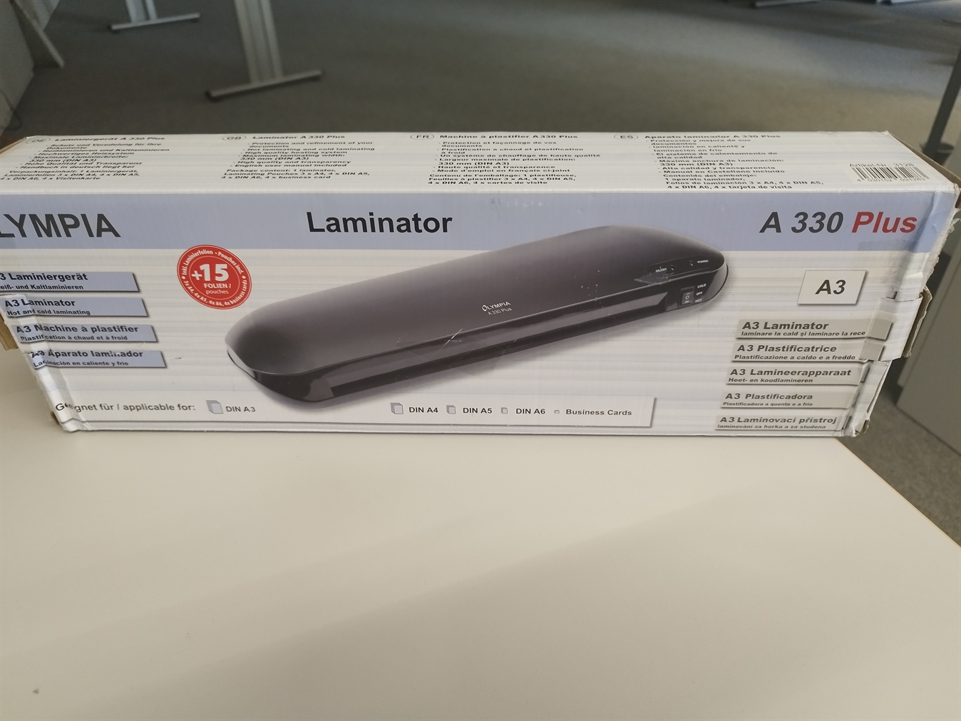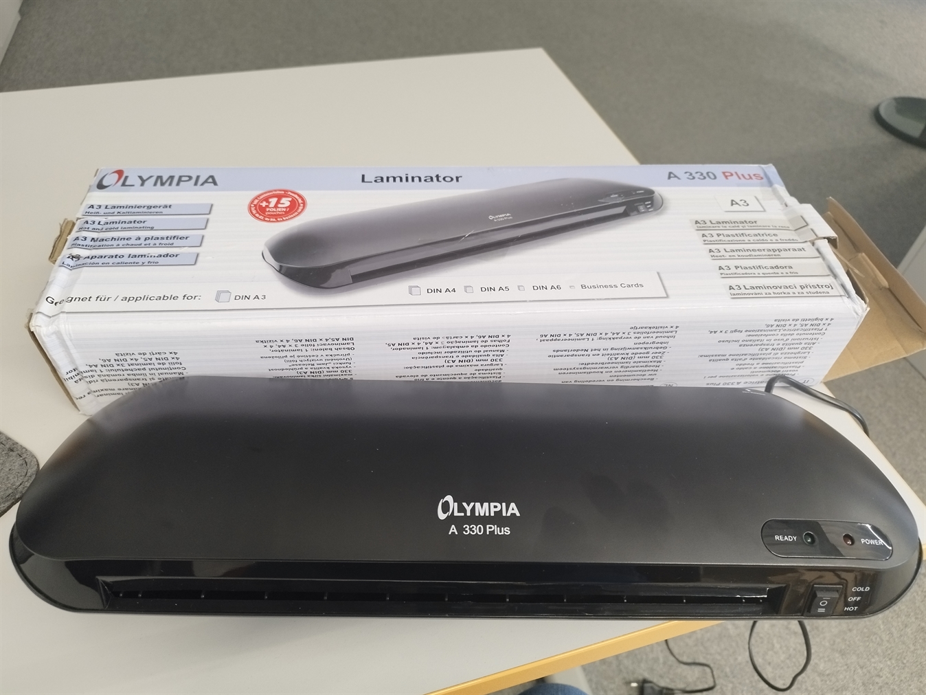 Poškodovana embalaža: plastifikator dokumentov Olympia A3 A330 Plus