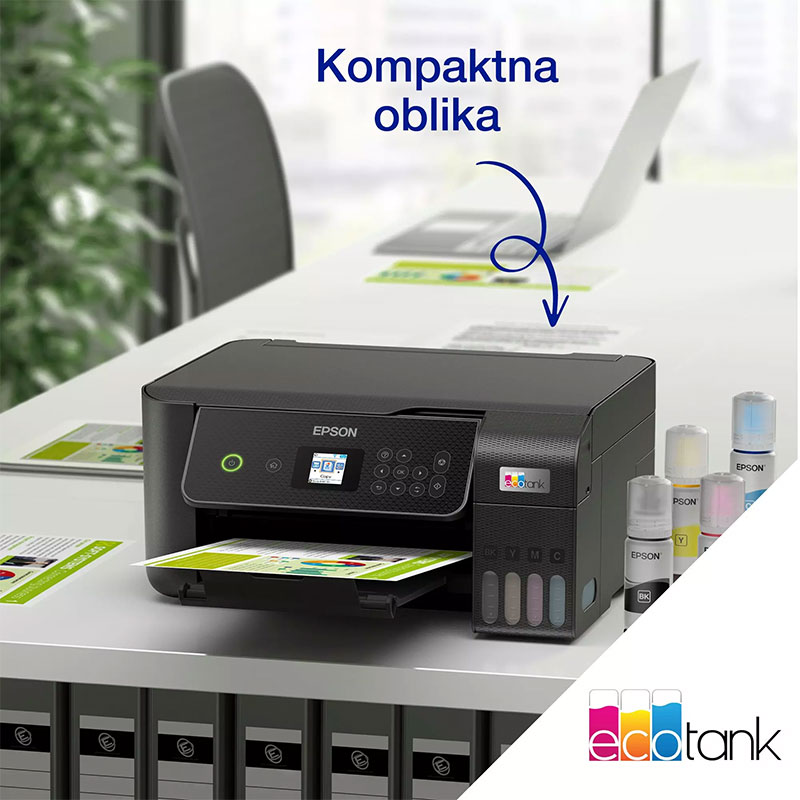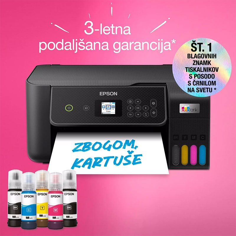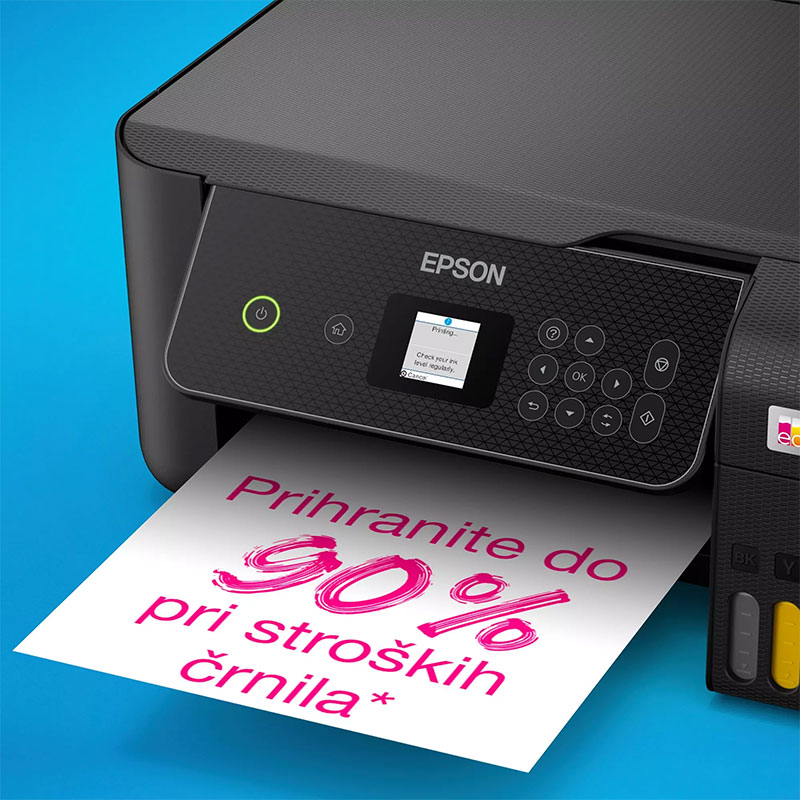 - V paketu črnilo za do triletno uporabo: Priloženo črnilo za natis 8100 črno-belih in 6500 barvnih strani - Izjemno zmogljive nadomestne stekleničke s črnilom: En komplet stekleničk s črnilom je enakovreden do 66 kartušam s črnilom - Aplikacija Epson Smart Panel: Brezžično nastavite, spremljajte, tiskajte, optično prebirajte in več iz vaše pametne naprave