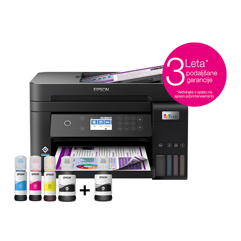 Priložena črnila: črna za 14.000 strani, barvna za 5.200 strani.