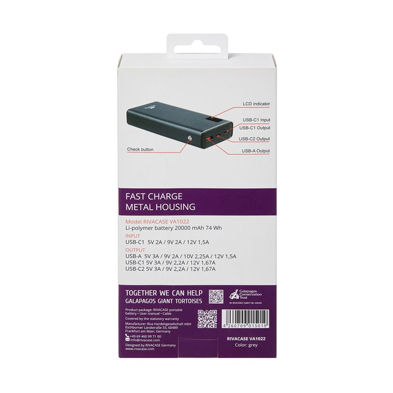 Prenosna baterija (powerbank) Rivacase VA1022 QC/PD, 20.000 mAh