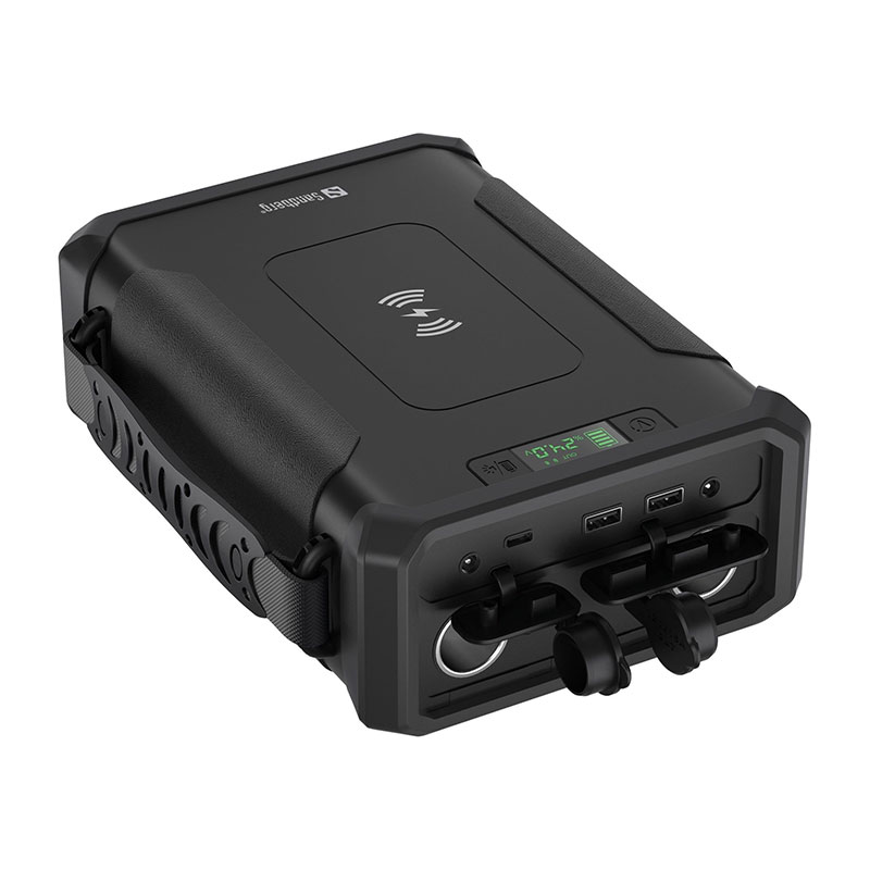 vrsto različnih priključkov, ki omogočajo napajanje skoraj vseh vrst naprav. Na voljo sta dva USB-C priključka za hitro polnjenje prenosnikov, tablic in pametnih telefonov, DC izhod za prenosne računalnike z vključenimi kabli in adapterji ter dve avtomobilski vtičnici z močjo 180 W / 12 V DC, idealni za napajanje kamp opreme, kot sta mini hladilnik ali aparat za kavo. Poleg tega ima vgrajen