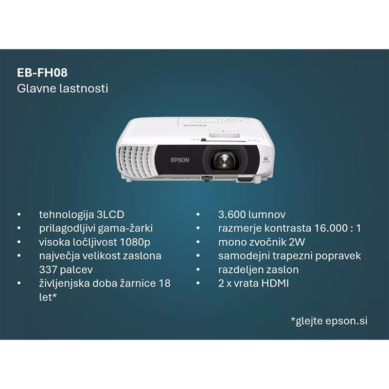 | Projekcijski sistem: | Tehnologija 3LCD, Zaslonka RGB s tekočimi kristali |