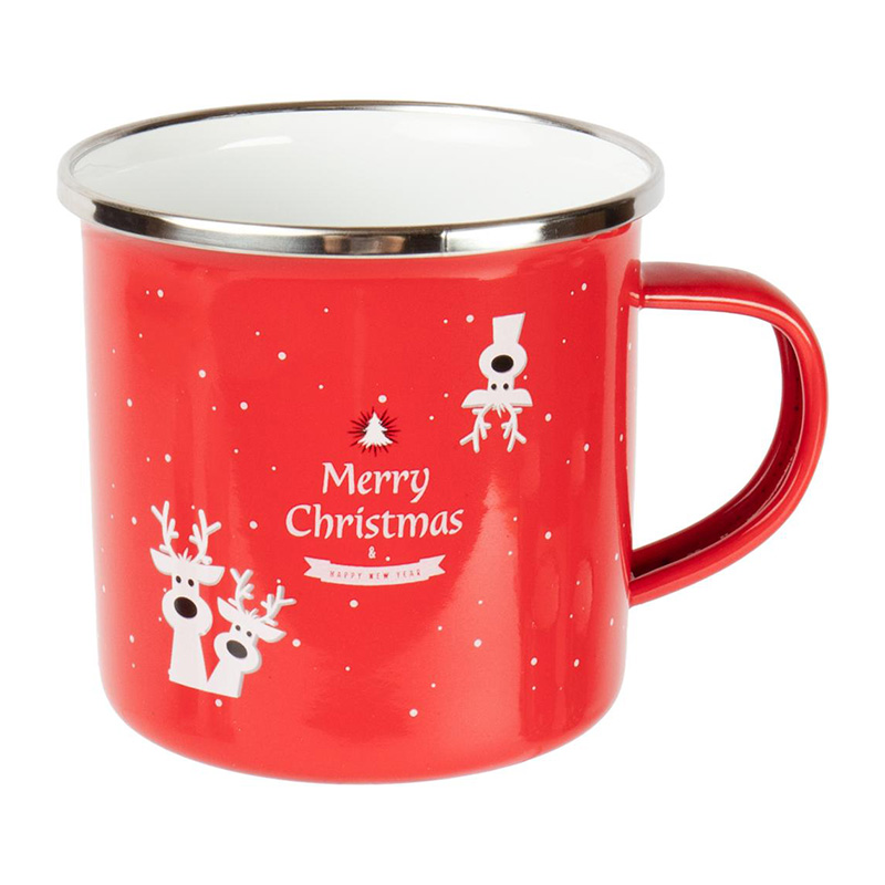 Skodelica Retro Merry Christmas, emajlirana, rdeča