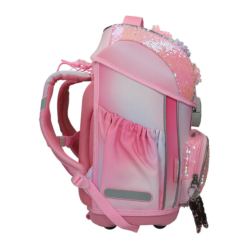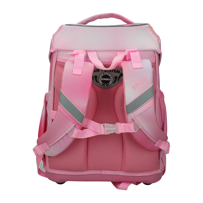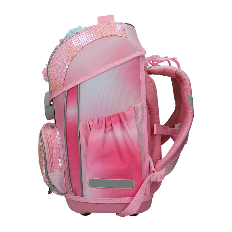 Ergonomska šolska torba z oblikovanim, ojačanim hrbtiščem ter stabilnim in trdnim dnom. Vgrajen sistem omogoča pravilno namestitev torbe, glede na otrokov položaj, naramnice pa so prilagodljive na več položajev, glede na velikost. Za otrokovo varnost poskrbijo vgrajeni odsevniki, zaradi katerih je otrok ponoči viden s katerekoli strani. Izdelana je iz kvalitetnega, zelo trpežnega 100 % poliestra brez PVC.