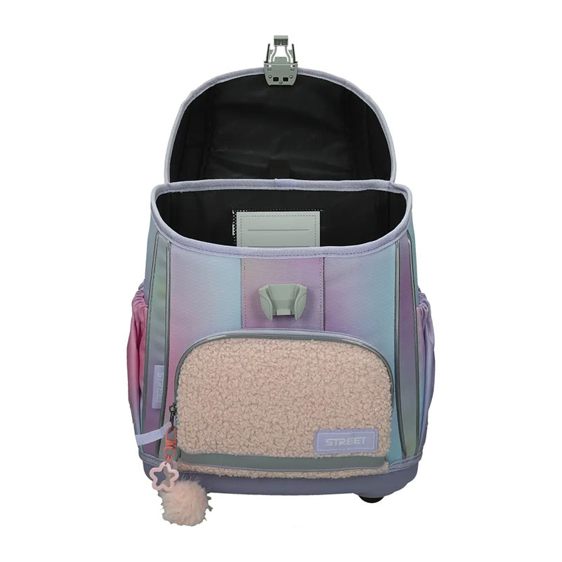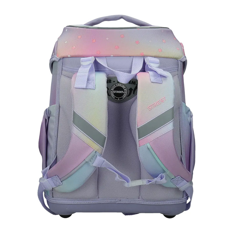 Ergonomska šolska torba z oblikovanim, ojačanim hrbtiščem ter stabilnim in trdnim dnom. Vgrajen sistem omogoča pravilno namestitev torbe, glede na otrokov položaj, naramnice pa so prilagodljive na več položajev, glede na velikost. Za otrokovo varnost poskrbijo vgrajeni odsevniki, zaradi katerih je otrok ponoči viden s katerekoli strani. Izdelana je iz kvalitetnega, zelo trpežnega 100 % poliestra brez PVC.