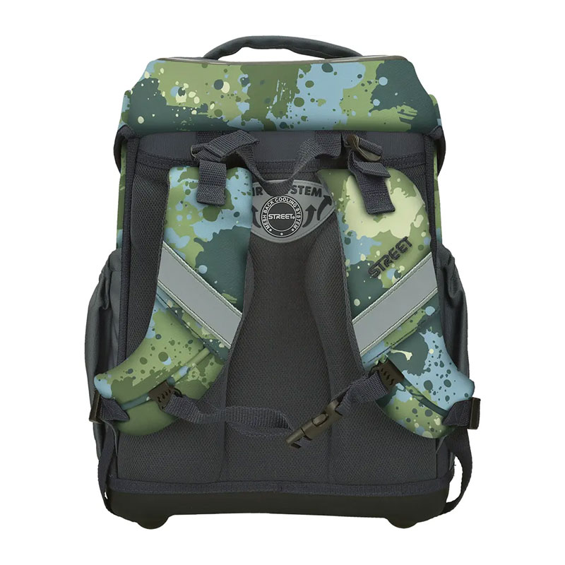 Ergonomska šolska torba z oblikovanim, ojačanim hrbtiščem ter stabilnim in trdnim dnom. Vgrajen sistem omogoča pravilno namestitev torbe, glede na otrokov položaj, naramnice pa so prilagodljive na več položajev, glede na velikost. Za otrokovo varnost poskrbijo vgrajeni odsevniki, zaradi katerih je otrok ponoči viden s katerekoli strani. Izdelana je iz kvalitetnega, zelo trpežnega 100 % poliestra brez PVC.