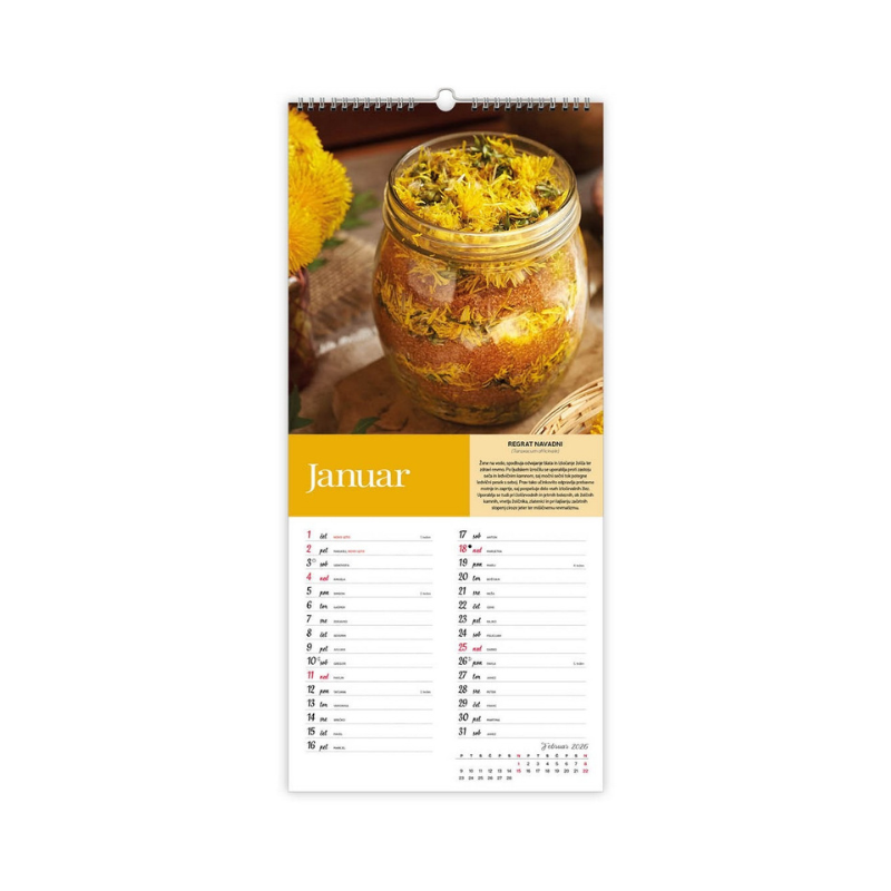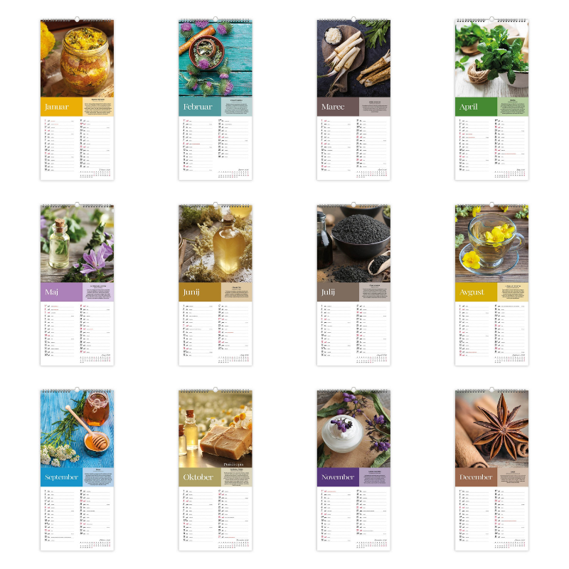 Stenski dvomesečni koledar. Označene ima praznike in lune.
