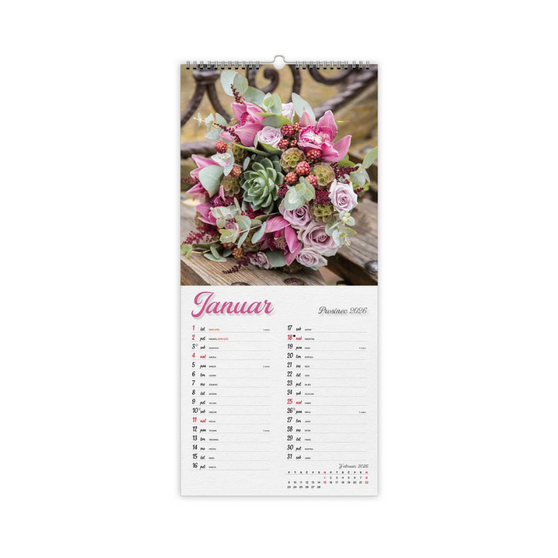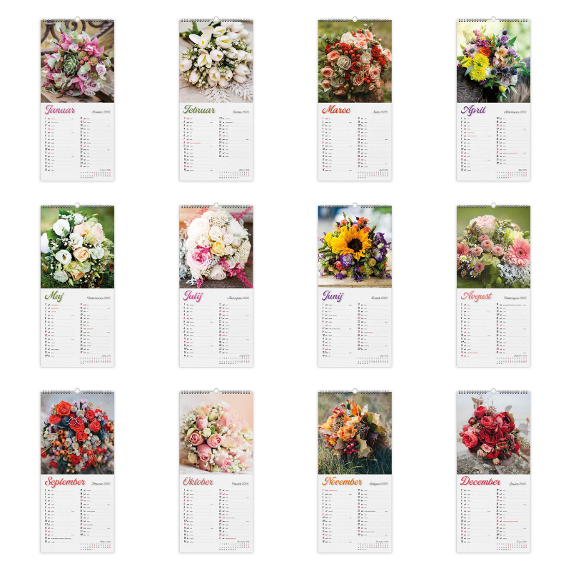 Stenski dvomesečni koledar. Označene ima praznike in lune.
