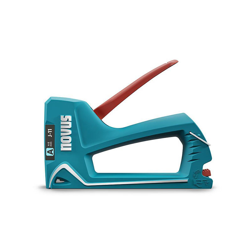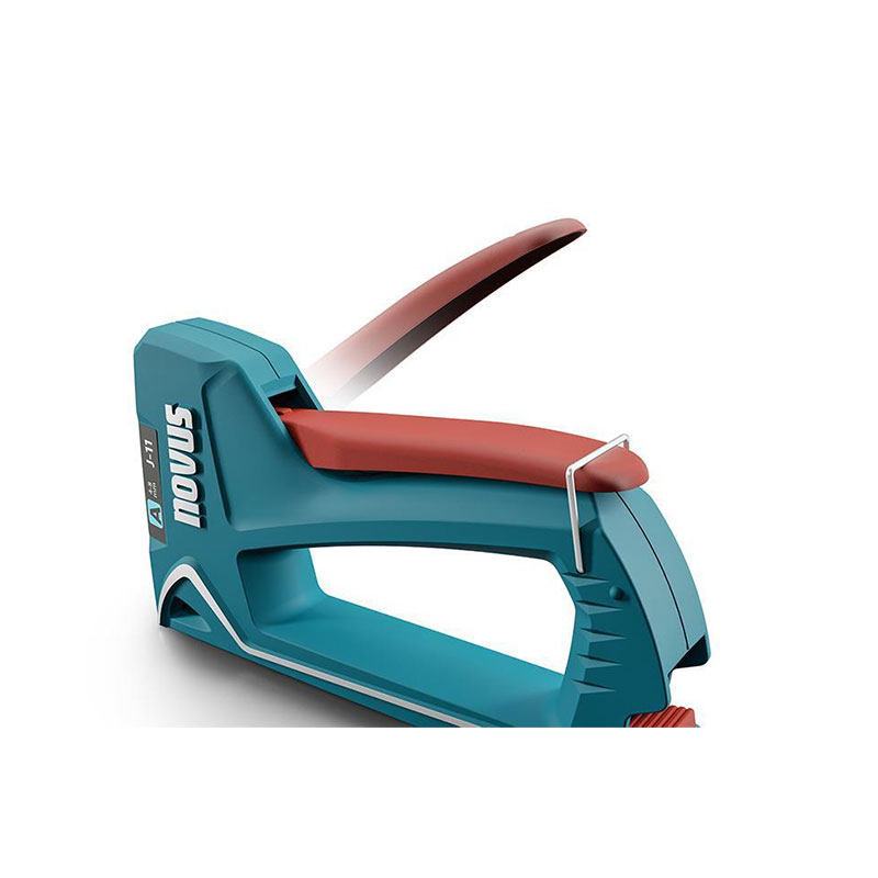 omogoča pritrjevanje ali spenjanje blaga, tekstila, tankega lesa, folij in mehkih plastičnih plošč debeline od 2 do 10 mm. Posebej oblikovan sprednji del zagotavlja jasno vidljivost izhoda sponk, kar omogoča natančne in čiste rezultate pri delu. Ima možnost