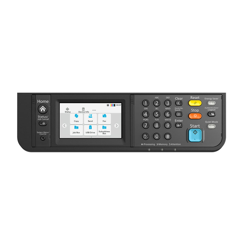 • Lastnosti: več kopij iz pomnilnika, elektronsko sortiranje, preskok praznih strani, preskok vrstic, obojestransko kopiranje, funkcija 2-v-1 in 4-v-1, način deljenja, samodejno obrezovanje DP, kopiranje osebnih izkaznic s podporo za samodejno obrezovanje, zaznavanje prepognjenih vogalov, neprekinjeno skeniranje, razveljavitev prioritete, Eco Print (kopiranje) - način varčevanja s tonerjem, odstranjevanje določenih barv, brisanje robov, samodejna izbira papirja, ročna in samodejna prilagoditev gostote ozadja, ročna in samodejna pomanjšava/povečava