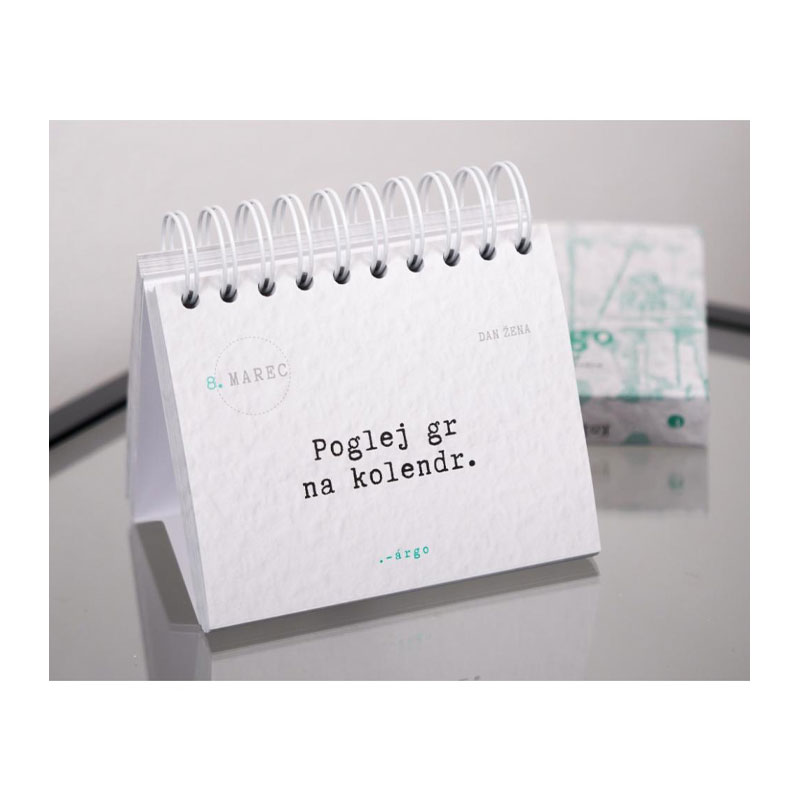 Ko se šti ldi dov sedejo pa popravhajo kk so šl grta pa dovta, pa kk je štk pa što, nastane koroški árgo. Ka taj hoč lepšega. Lahko bi biv kak dan več fraj ne pa štk. Da nam bo cajt saj mavo bol hitr šov, smo prprajli kolendr, ki vela za skos. Upoštevali smo letne čase in fiksne praznike, pa še za take mavo bol pa mavo majn pomembne dni ttega al onega. Kolkr se nam zdi, nam je kr uspevo – za vsak dan smo našli najlubše koroške izraze in značilne fraze, v kirah bi se mogo najt čist vsak. To pa tam se najde kaka ne tk lepa beseda, fali kaka vejica, vidi pa se, da s(m)o na Koroškem sami dori pa delovni ludi. Da bo vsak dan lep, naj se ve kk Korošci šprehajo/mo pa ka vse se spravhajo/mo. Če pa kdo kaj ne zastopi pa naj vpraša bico al pa dedana, al pa nas pa vam z veseljem prevedemo. Fajn bote!